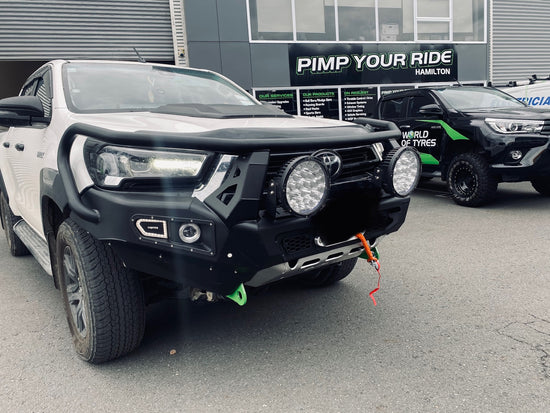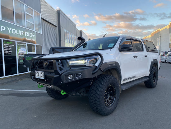 Updates2022 Hilux SR5 Cruiser came to us for fitment of the AFN Triple loop Bar, along with a 50mm front suspension lift, Maxxis Razr's and Replica Beadlock Steel wheels.